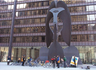 Chicago’s Daley Plaza around five thirty. Some individuals